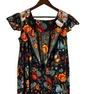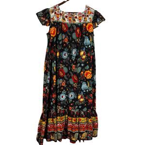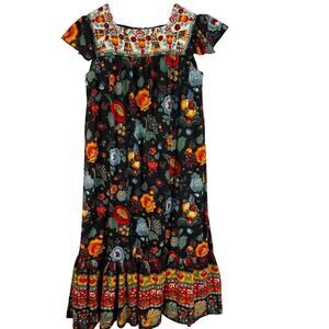 Peggy Lou 1970’s Vintage Black Floral Printed Midi Dress Women’s SZ 6 (US) Boho