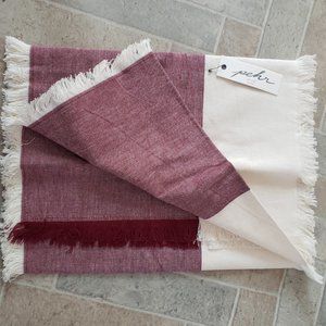 Pehr Table Runner 14 x 90 Chambray 100% Cotton Wine Natural Fringed NEW