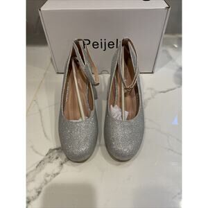 Peijely Women’s silver glitter round Toe 2 inch Heel 8.5