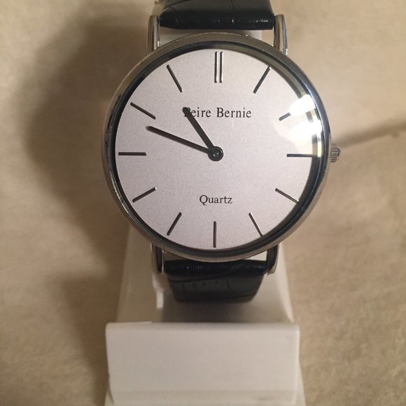 Peire Bernie Silver Tone Watch - Black Leather Band - New