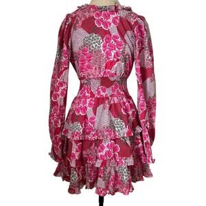 Peixoto $268 ruby smocked mini dress tiered ruffle pink red Anthropologie sz S