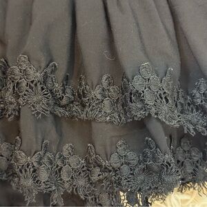Peixoto Belle Mini Dress smocked ruffled square neck black rayon SZ S bodycon