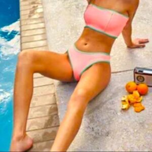 Two tone, stretchy, stretch, hipster, hippie, beach, beachy, summertime, sun, vacation, bubble gum, mint green, piping, trim, solid