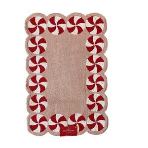 Peking Handicraft Peppermint Swirl Hook Rug 2x3 Holiday Pink Red White Wool