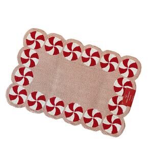 Peking Handicraft Peppermint Swirl Hook Rug 2x3 Holiday Pink Red White Wool New