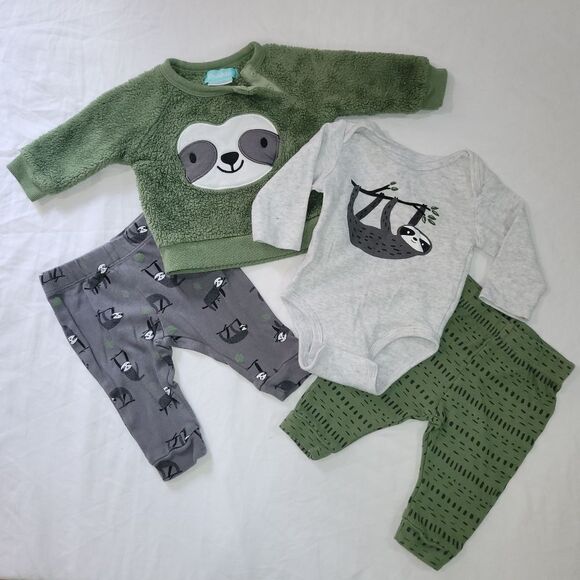 Pekkle Size 3 Months Green Sloth Baby 4 Piece Outfit Set