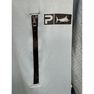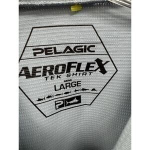 The Pelagic AeroFlex Tek Men's L Blue Performance Fishing Long Sleeve Shirt is a versatile and high-performance piece of clothing designed for fishing enthusiasts. With a crew neck and pullover closure, this shirt provides a comfortable fit for casual occasions. Made from a blended fabric of polyester and elastodiene, it features a zippered chest pocket for added convenience. The shirt is breathable and stretchy, making it suitable for all seasons, ensuring that you stay comfortable and dry while out on the water. The solid blue color and fishing-themed accents add a touch of style to this functional and practical garment.