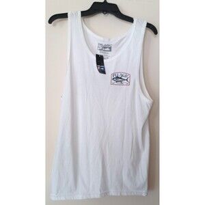 Pelagic Men's Small White Graphic Tank Top Tuna Fish Logo 20 Year Anniversary NWT