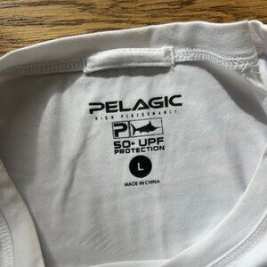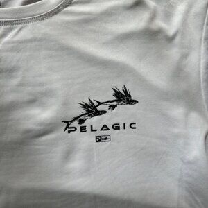 This is a nice Pelagic Premium UV t-shirt in white with black graphics. Shirt is in great condition and comes from a clean, smoke-free home.