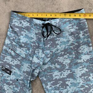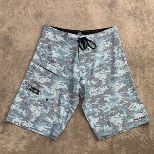 Pelagic Shorts Mens 32x12” Evolve 4 Tek Hybrid Boardshorts Blue Camo Fishing