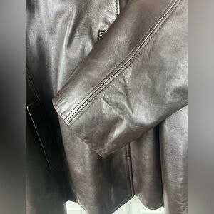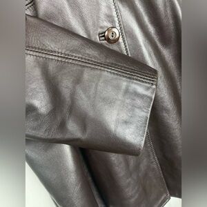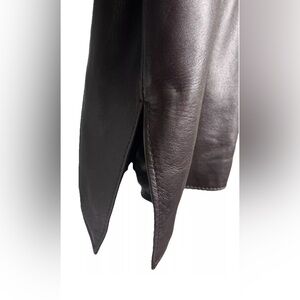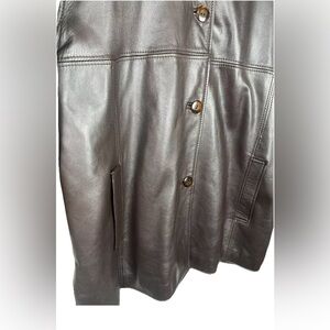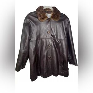 Peleteria Vintage Sheepskin Brown Leather Coat Fur Collar Womens Size 46/14