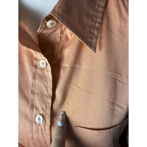 Pell & Co long sleeve shirt dress in a soft peach-orange hue. Button-up front with a classic collar and midi length for effortless style. Size 14.