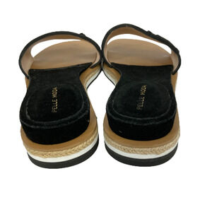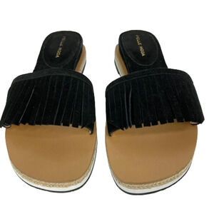 Pella Moda Sandals Womens Sz 8 Suede Leather Fringe Black Slides Flats NEW