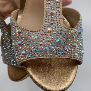 Pelle Vero embellished t strap high heels sandals. Iridescent color with golden tone heels.