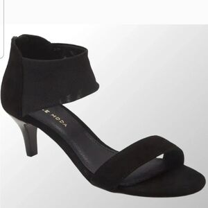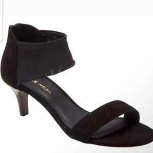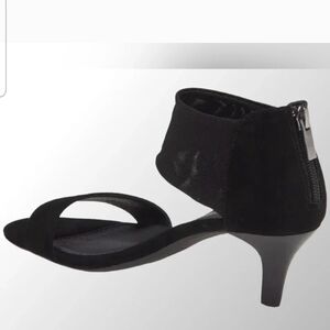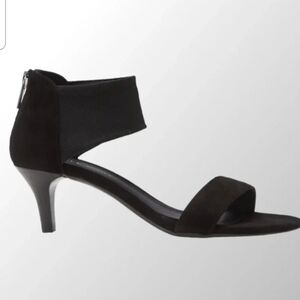 These Pelle Moda black heels feature a minimalist design with a medium stiletto heel and a comfortable elastic ankle strap. The suede-like material adds a touch of elegance, making them perfect for formal occasions. NWT Size 9