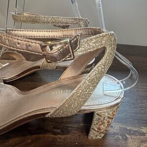 Pelle Moda Gold Glitter & Rhinestone Embellished Block Heel Sandal - size 7.5M
