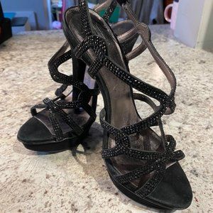Pelle Moda High Heel Size 7M Black with Black Rhinestones