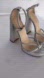 Chic metallic silver sandals with block heels. Strappy design for a modern look. Perfect for stylish outings. Some scuffing inside, see photo