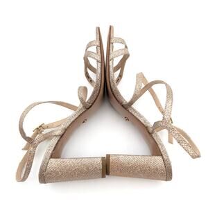 Pelle Moda Noreen Gold Glitter Strappy Block Heels Women's Size US7M EU38