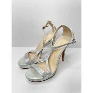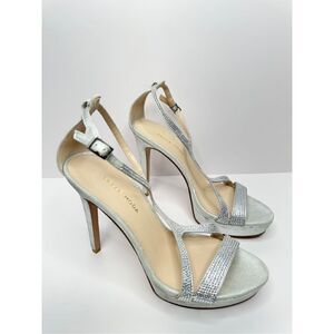Pelle Moda Onora Sandal Size 9 Silver Metallic Suede Ankle Strap Rhinestone