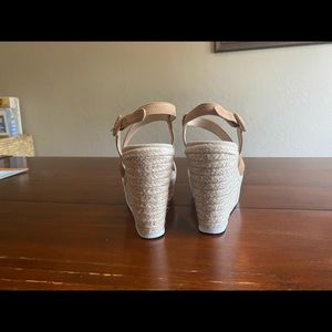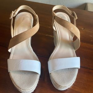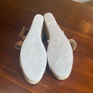 These shoes have been worn once (for my wedding). They are in excellent condition. They are no longer available at Nordstrom or on the Pelle Moda website. These shoes are technically a size 9 but run a half size too small, so if you wear a 8.5 these will fit you. I wear a size 8 and wore them comfortably but they were slightly large (hidden by my floor length dress). There is a small scrape on the suede strap which I have zoomed in on in one of the photos. Please message with any questions!