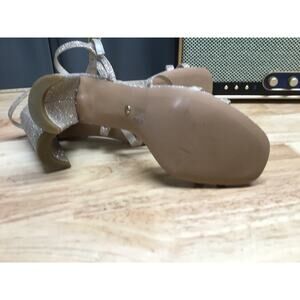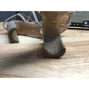 Pelle Moda Sandals Womens 7.5M Silver Glitter Open Toe Block Heel Buckle Closure