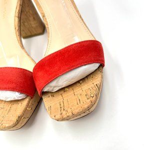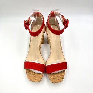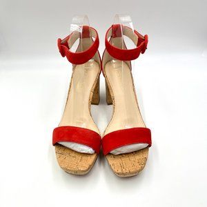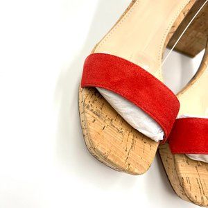 Pelle Moda Womens Amari Flame Red Suede Cork Platform Sandals Heels Shoes 7.5