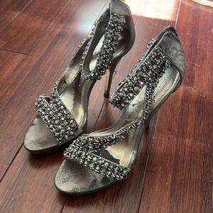 Pelle Moda Womens Heels - Size 8 Grey Heel - Strappy High Heel - Great Condition - Beaded Heels