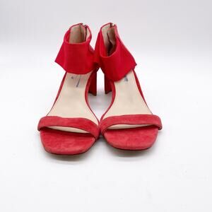 Pelle Moda Women's Red Suede Ankle Strap Block Heel Sandals Size 6.5M