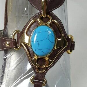 SEXY - ANKLE STRAP - STRAPPY - TURQUISE FAUX STONES &