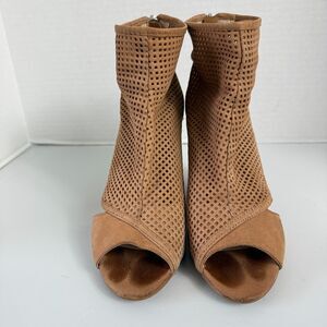 Pelle Moda Women's Tan Perforated Leather Peep Toe Wedge Bootie Shoes Size 6 M