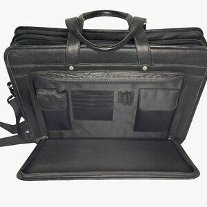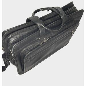 Well made leather briefcase with loads of space and details. Two large center zip compartments. I believe this could be vintage as the phone comparments look like those I had in the 80's 90's.