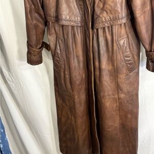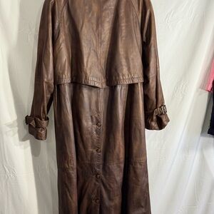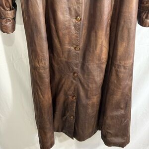 Pelle Studio Long Brown Leather Duster/Trench Button Up Coat Sz M