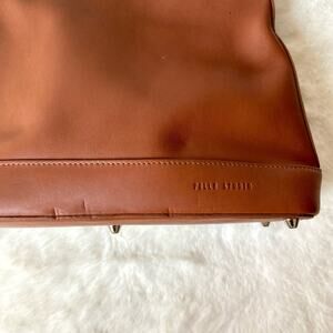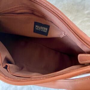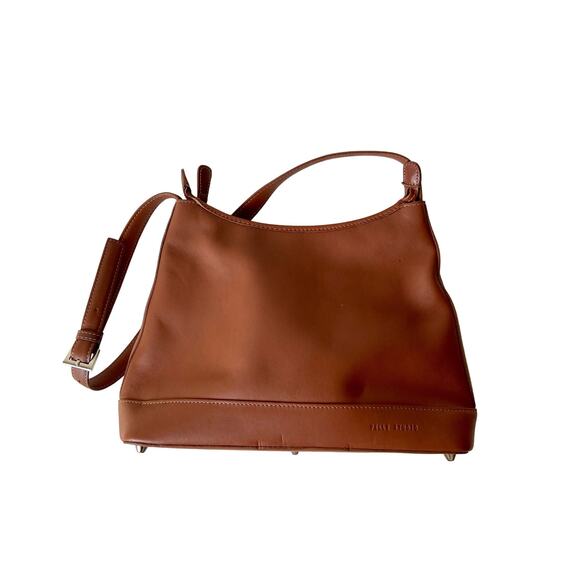 Genuine tan leather shoulder bag. Features a sleek design with a sturdy strap. Ideal for daily wear.