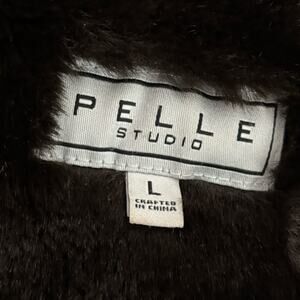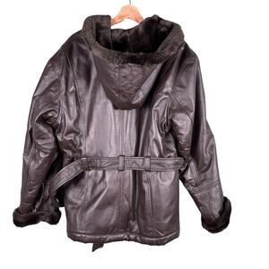 Pelle Studio Womens Jacket Large Leather Faux Fur Hooded Belted Full Zip Winter