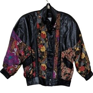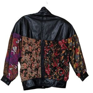 Pelle vintage leather textile floral abstract panels bomber 80's size Small
