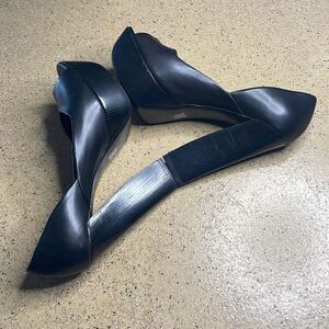 Additional Details: Nicely footbed liners, tapered sculptural wood heels.