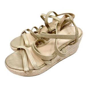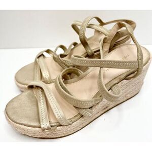 Pelle Moda Gold Espadrille Wedge Sandals Ankle Strap Strappy Size 6.5