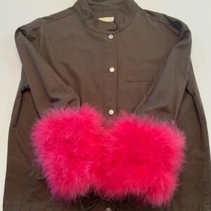 Cult brand Pello Bello pink feather cuff jacket. Tags still attached
