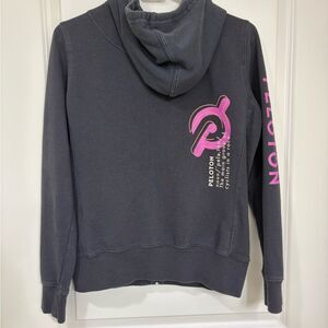 Peloton Black Zip-Up Hoodie with Pink Logo - size SM