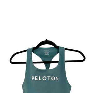 Peloton Spruce Cadent Scoop Neck Built In Shelf Bra Logo Front Chest Twist Back Detail Racerback Breathable Moisture Wicking Crop Tank Sleeveless Performance Double Knit Stretch Athletic Activewear Top Size Small - Excellent condition.
