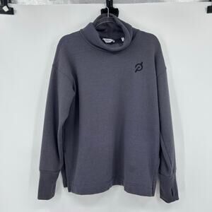 Peloton Charcoal Mock Neck Pullover Sweatshirt Logo Thumb Hole Cuffs Womens Sz S