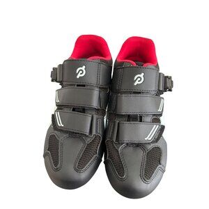 Peloton Cycling Shoes Black Red Trim & Cleats Size 38 Adjustable Straps