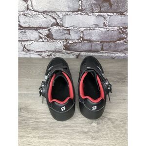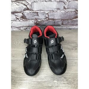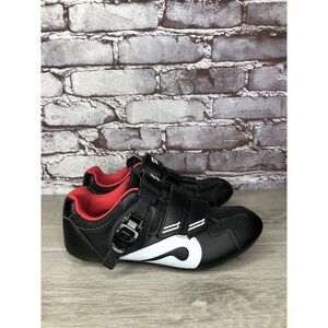 Peloton Cycling Shoes Black Leather Mesh White Red Strap Women’s Sz 37EU/6.5M US