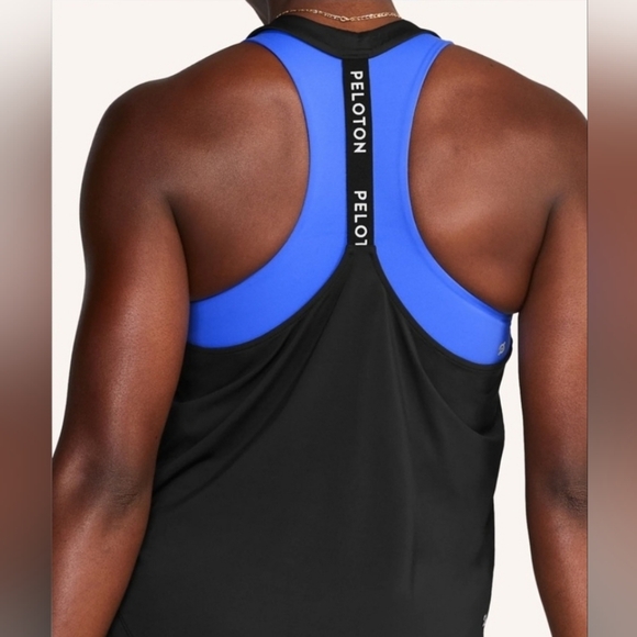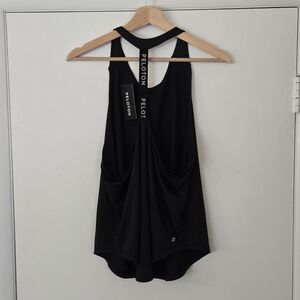 new with tags, black racerback tank with T back and 'peloton' detailing. flowy open fit at back.