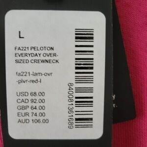Peloton Everday Oversized Crewneck Sweatshirt L NWT NEW Pink