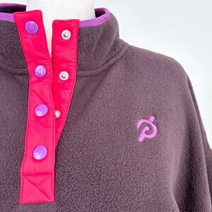 Size X-Large Peloton Pullover. Soft, brown fleece fabric with a quilted bottom. Large front kangaroo pocket. Contrasting trim on the snap placket. So cozy, great condition!
