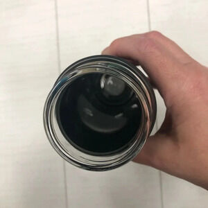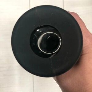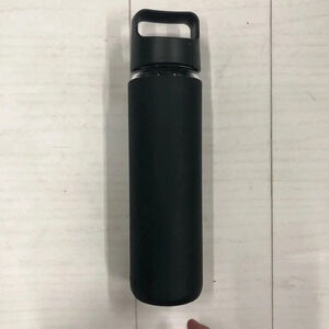 Peloton Glass Water Bottle with Black padded material around glass with logo.