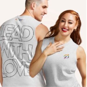 Peloton Lead with Love sleeveless tee, 100% cotton, size S, PRIDE