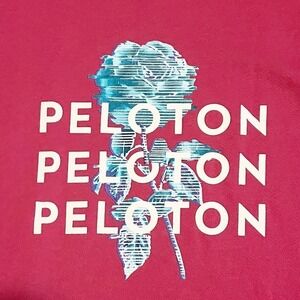 Elevate your activewear wardrobe with this stylish and comfortable Peloton sweatshirt. The berry-colored piece features a repeated white brand logo with an Aqua shades of a digital rose graphic, giving it a designer touch. The collarless, oversized pullover boasts a crew neckline and long sleeves, making it perfect for all seasons.